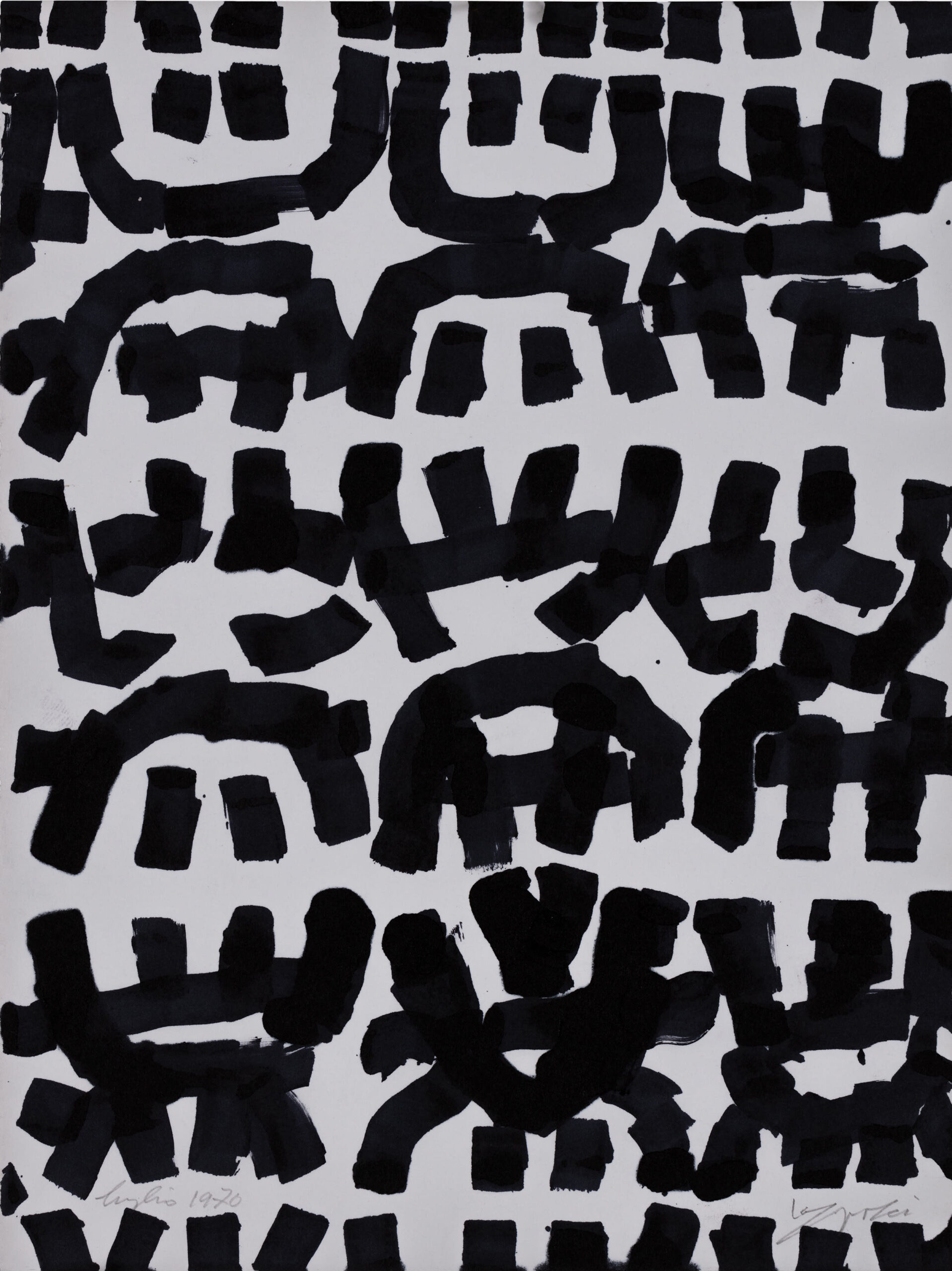 With the gradual abandonment of figuration, after a brief period of neo-cubist experiences (1947-1949), he arrived at a rigorous and personal abstractionism characterised by a unique form-sign which, combined in infinite variations, arrived at the point in which it constructed the space of the painting, a symbolic representation of an inner spatial organisation. In January 1950, the exhibition, inaugurated at the Galleria del Secolo in Rome, exploded onto the art scene as an emblematic event. The works were later presented at Galleria Il Milione in Milan and Galleria del Cavallino in Venice, creating a “Capogrossi case” among the critics.
