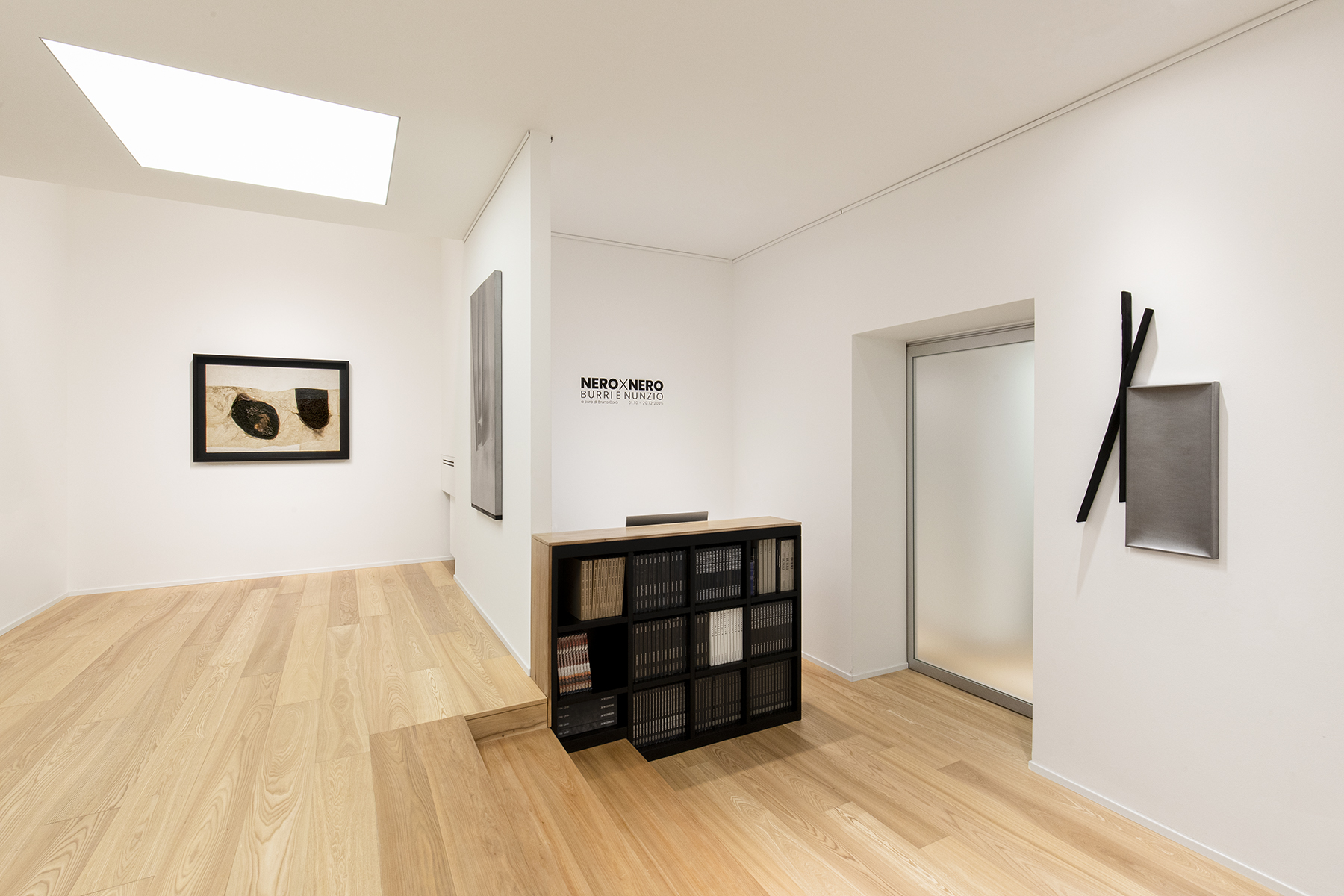 Mazzoleni opens its new exhibition space in Milan with the exhibition Nero x Nero (Black x Black), dedicated to works by Alberto Burri and Nunzio and curated by Bruno Corà, art critic and President of the Burri Foundation in Città di Castello.